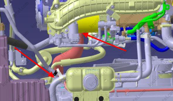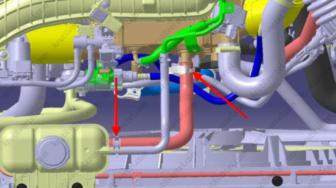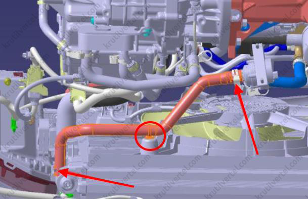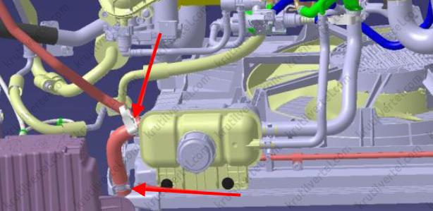 Замена подводящего/отводящего шлангов высокотемпературного радиатора