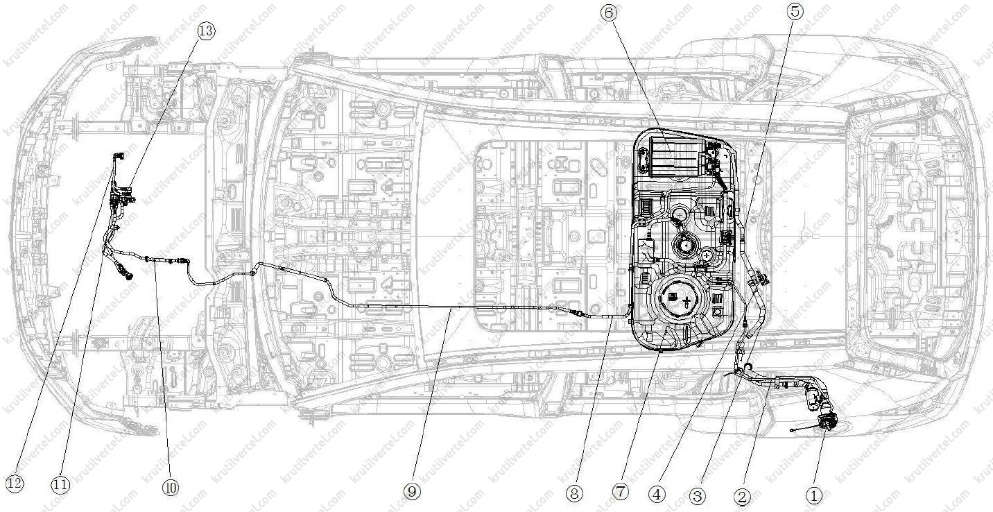 Адсорбер паров топлива представляет собой устройство для снижения токсичности выбросов, заполненное порошкообразным активированным углем и предназначенное для хранения паров топлива, поступающих из топливного бака. При соблюдении определенных условий блок ECM подает электропитание на электромагнитный клапан адсорбера, пары топлива продуваются в цилиндры двигателя и там сгорают.