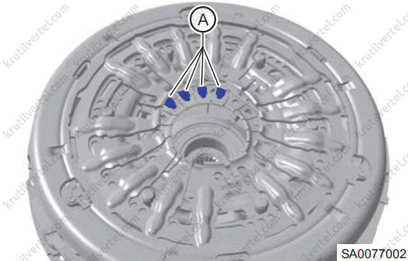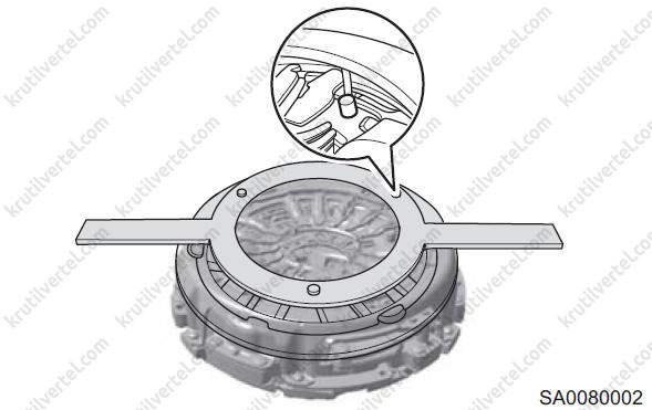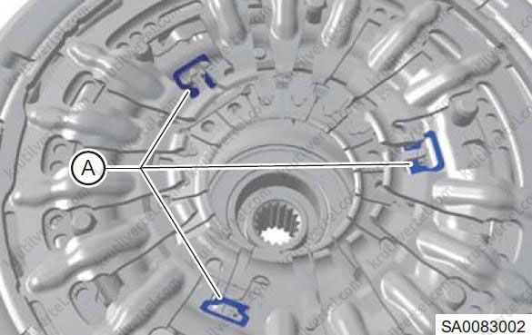 - При снятии двойного сцепления выполняется автоматическая регулировка механической части обоих сцеплений, чтобы не произошла переустановка. Поэтому автоматическая регулировка механической части должна быть выполнена снова для установки сцеплений в правильное положение перед установкой узла сцепления.