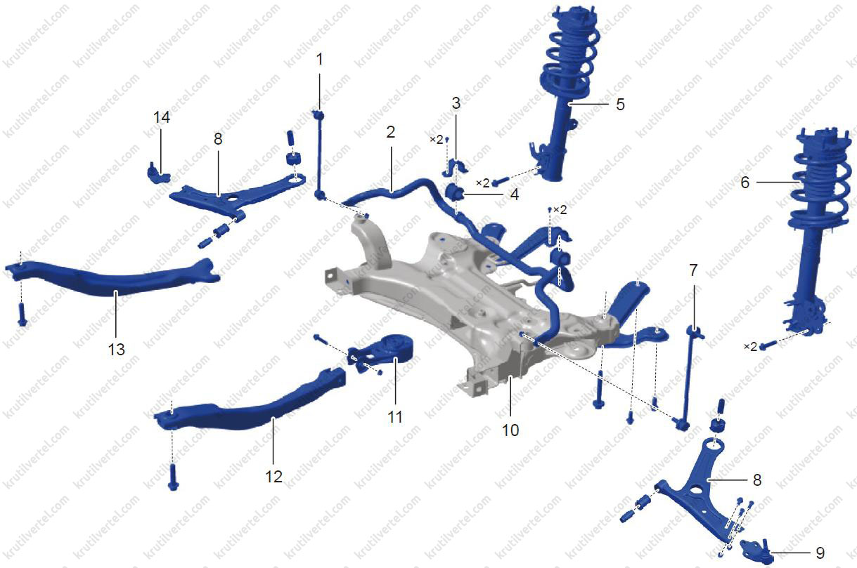 | Передний стабилизатор подвески в сборе (согнут или сломан) | |