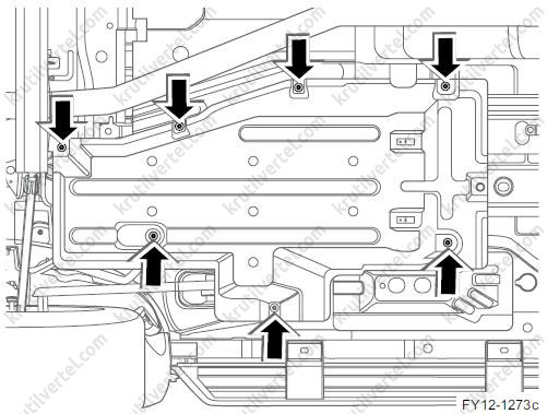 1. Выверните два передних винта крепления облицовочной панели арки крыла.