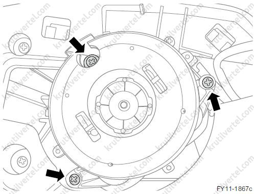 4. Отверните три крепежных винта электродвигателя регулировки электрического зеркала заднего вида.