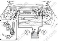 - Запуск двигателя от сторонней аккумуляторной батареи