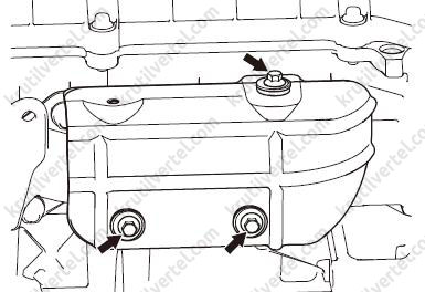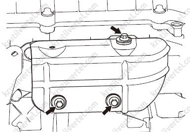 3. Выкрутить три болта крепления и теплоизоляционный кожух выпускного коллектора, как показано на изображении ниже.