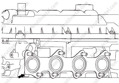 Гайки крепления выпускного коллектора при сборке необходимо заменить новыми.