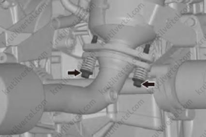 4. Выкрутить два болта крепления, после чего снять прокладку, как показано на изображении ниже.