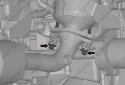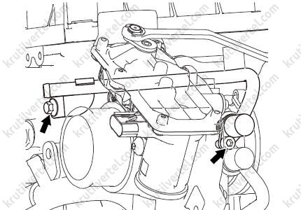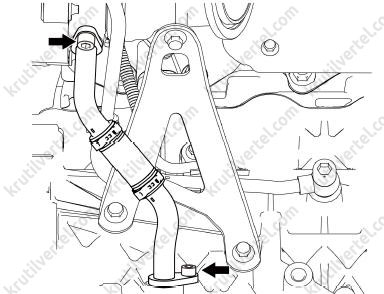 2. Слейте жидкость из системы охлаждения двигателя (подробнее, см. соответствующий раздел в главе Система охлаждения).
