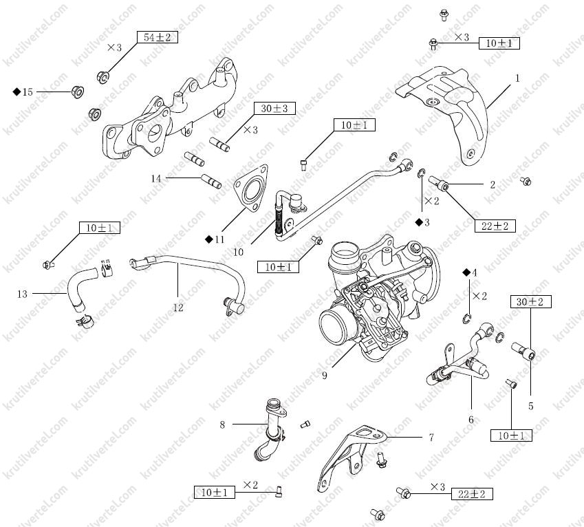 На приведенном ниже рисунке турбокомпрессор изображен схематически, потому может отличаться от реального.