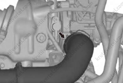 2. Проверить надежность соединения воздушного патрубка с турбокомпрессором.