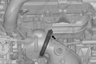 7. Ослабить крепление хомута отводящего патрубка выхлопной системы, как показано на изображении ниже.
