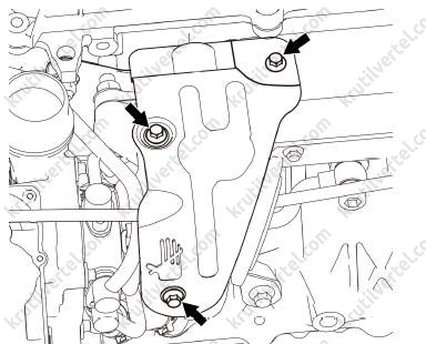 9. Выкрутить три болта, затем снять теплоизоляционный кожух турбокомпрессора, как показано на изображении ниже.