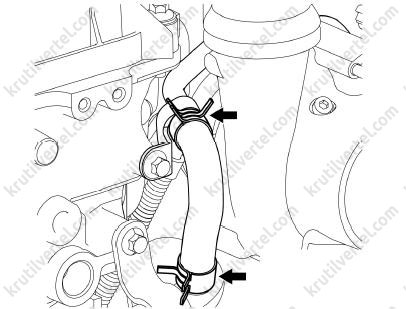 6. Проверить вакуумный шланг актуатора, а также шланги и патрубки турбокомпрессора.