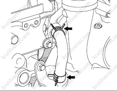 При замене патрубков и шлангов промежуточного охладителя необходимо заменять их хомуты их крепления.