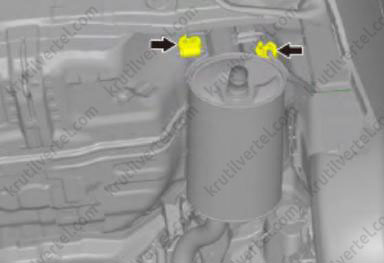 3. Снять хомут крепления выхлопной системы, как показано на изображении ниже.