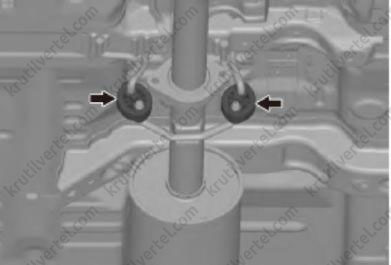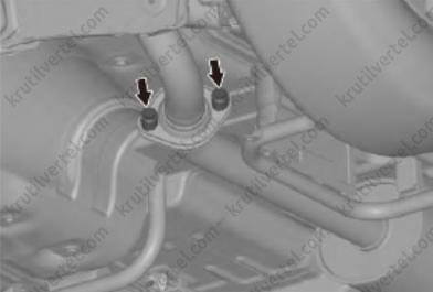 3. Ослабить крепление двух передних подвесов системы выпуска.
