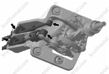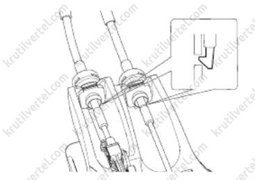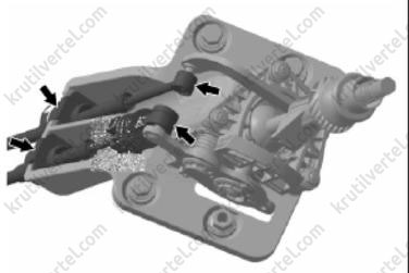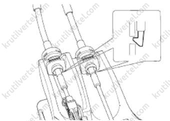 В завершение, удерживая кулису переключения передач в положении выбора 1-й и 2-й передач, переведите его в положение 2-й передачи по направлению к кронштейну троса.
