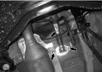 12. Отверните две гайки крепления и выкрутите болт крепления, как показано на изображении ниже.