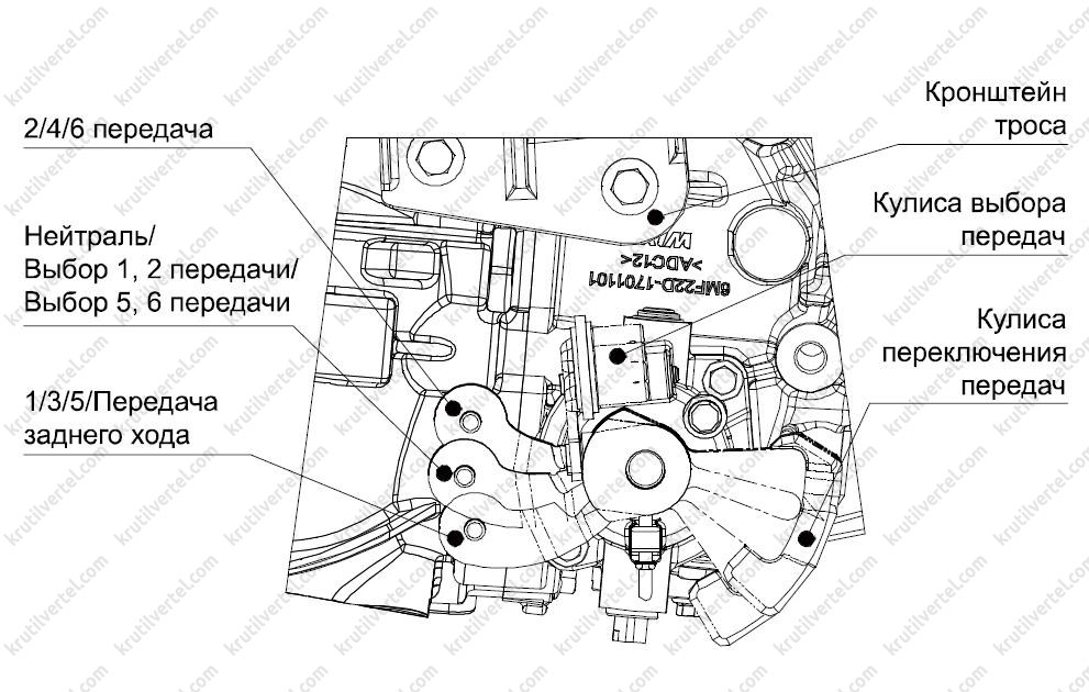 1. Проверить правильность установки троса выбора передач.