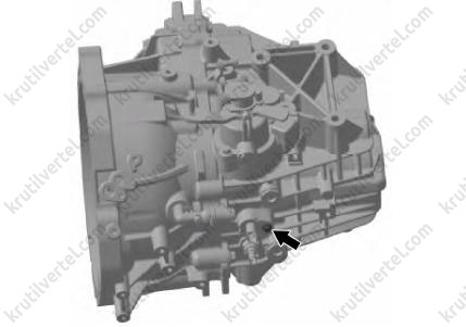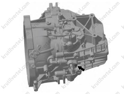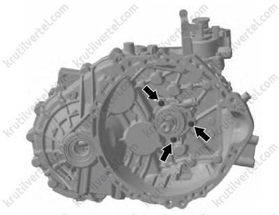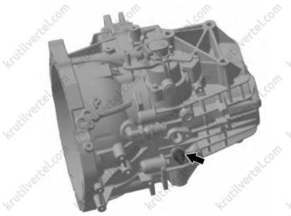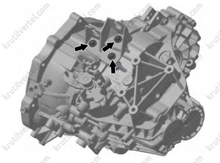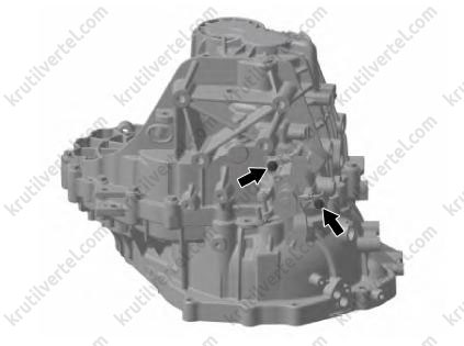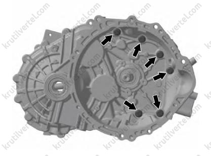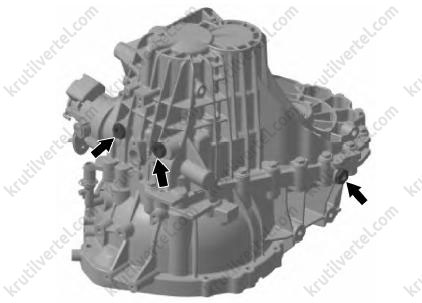 Поверните третий болт по часовой стрелке, резьбовое отверстие картера коробки передач является сквозным. Для обеспечения герметичности перед установкой болта необходимо нанести герметик по кругу на расстоянии 5 мм от нижней части болта.