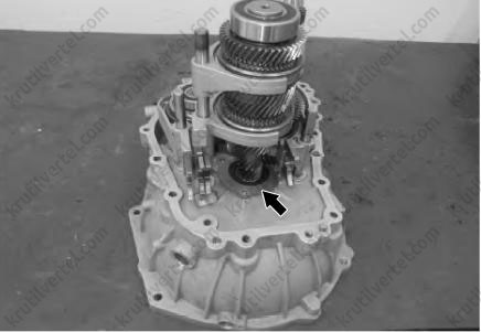 При извлечении старайтесь не задевать держатель подшипника вторичного вала и ведомую шестерню главной передачи.
