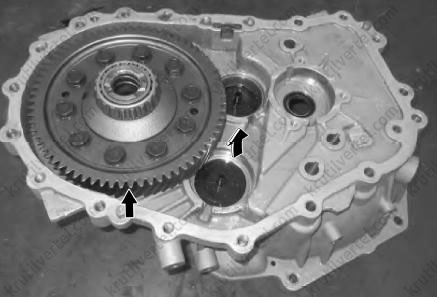18. Отделите главную передачу/дифференциал в сборе от картера коробки передач и снять главную передачу/дифференциал в сборе, как показано на изображении ниже.