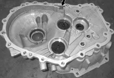 Процесс разборки осложняется из-за наличия герметика. Можно использовать небольшой молоток (рекомендуется молоток с резиновым бойком), чтобы постучать по выступающей части боковой части картера коробки передач. После разделения, снять картер коробки передач.