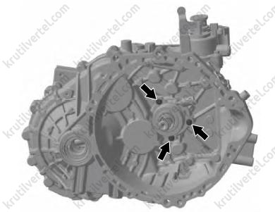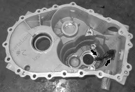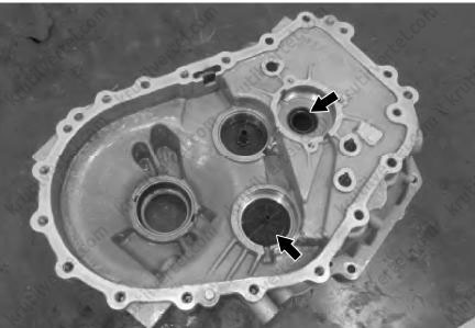 Старайтесь не повредить поверхность стыка картеров во время разборки, чтобы избежать утечки масла из коробки передач после повторной сборки.