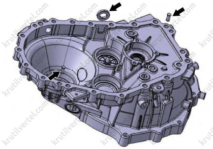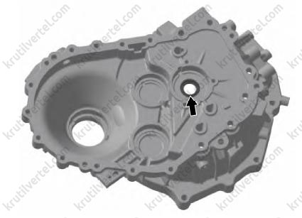 Резьбовое отверстие для левого болта картера коробки передач является сквозным.