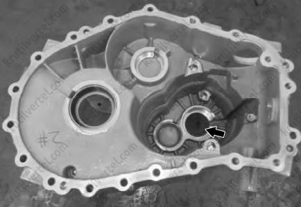 16. Снять нажимную пластину переднего подшипника первичного вала, как показано на изображении ниже.