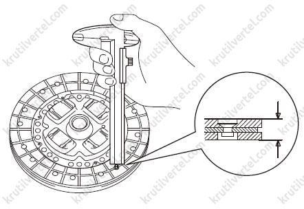 1. С помощью штангенциркуля измерить толщину ведомого диска сцепления, как показано на изображении ниже.