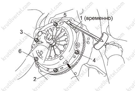 4. Выкрутить окончательно крепежные болты и кожух сцепления.