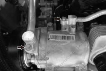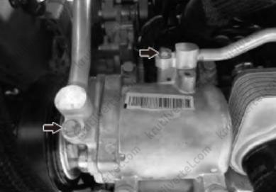 18. Выкрутить два болта и отсоединить трубопровод кондиционера, как показано на изображении ниже.
