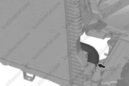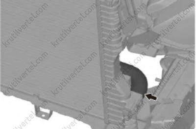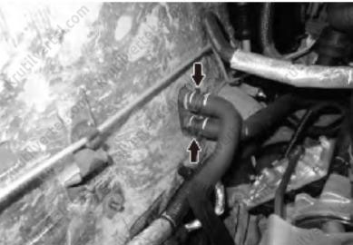 33. Отсоединить подводящий патрубок от радиатора, как показано на изображении ниже.