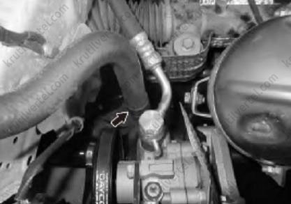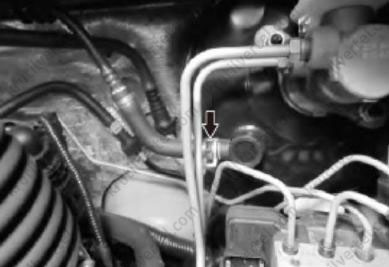 17. Отсоединить трубку насоса гидроусилителя рулевого механизма, как показано на изображении ниже.