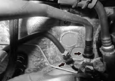 28. Отсоединить топливопровод и трубку десорбции, как показано на изображении ниже.