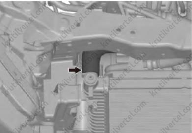 19. Отсоединить отводящий патрубок радиатора, как показано на изображении ниже.
