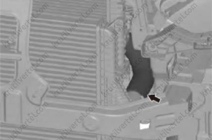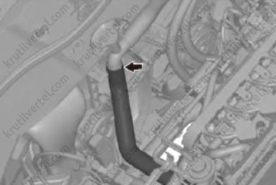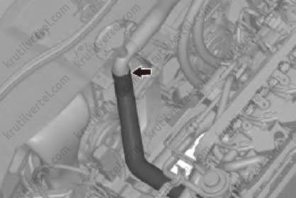 34. Отсоединить соединитьльную трубку впускной трубы радиатора, как показано на изображении ниже.