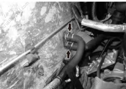 20. Подсоединить впускной и выпускной пат рубки радиатора отопителя, как показано на изображении ниже.