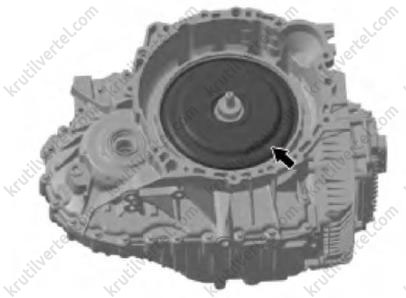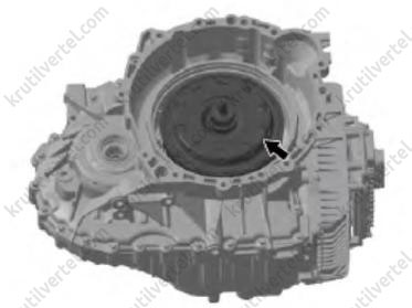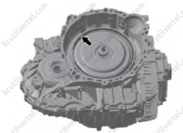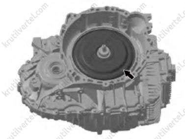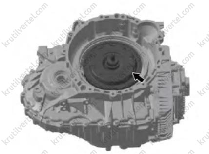 В начале установки модуля муфты двойного сцепления на место проверяйте, не находится ли поверхность приводного диска несколько ниже канавок установочного стопорного кольца кожуха муфты сцепления.