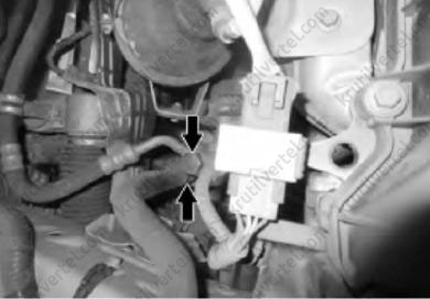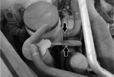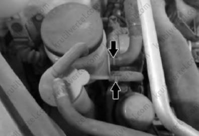 1. Открыть крышку масляного бака гидроусилителя руля, снять возвратный шланг масла с масляного бака гидроусилителя руля и слить масло в емкость.