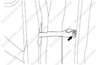 4. Снять накладку винта внутренней ручки передней двери, как показано на изображении ниже.