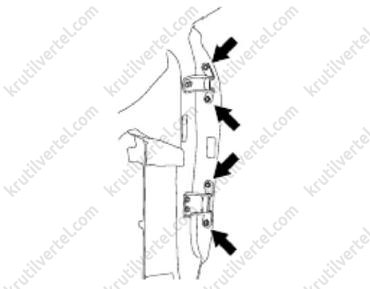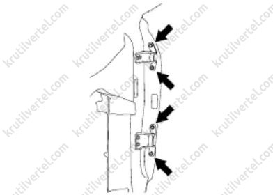 3. После регулировки затянуть 4 шарнирных болта крепления на кузове автомобиля.