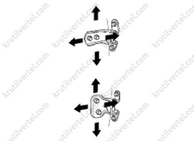 3. Ослабить болты крепления петель двери багажника и отрегулировать дверь по вертикали (вверх-вниз) и в продольном направлении (вперед-назад), как показано на изображении ниже.