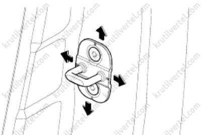 6. Аккуратно ослабить 2 винта крепления замка двери багажного отделения и отрегулировать положение замка по вертикали (вверх-вниз) и в продольном направлении (вперед-назад).