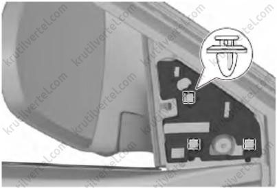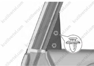 2. Снять 2 фиксатора крепления и снять внутреннюю треугольную облицовку передней двери, как показано на изображении ниже.