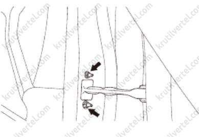 5. Открутить 2 гайки крепления на боковой стороне двери автомобиля, как показано на изображении ниже.