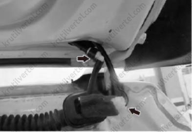 4. Отсоединить разъем жгута проводов с правой стороны и шланг омывателя.