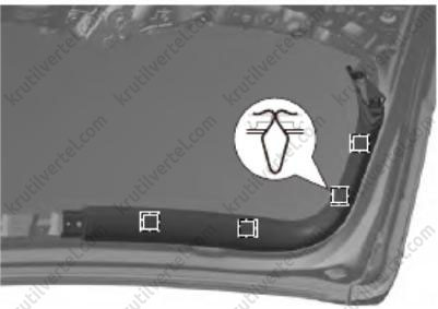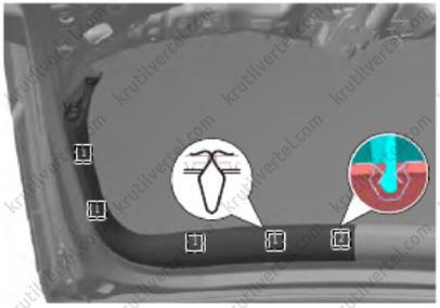 Для установки петель двери багажного отделения используются центрирующие болты. При установленных центрирующих болтах регулировка положения двери багажного отделения в проеме невозможна.