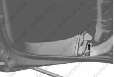 3. Выкрутить болт крепления ограничителя на стенке кузова, как показано на изображении ниже.