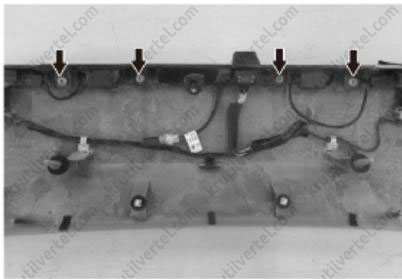 5. Выкрутить 4 винта крепления и снять кронштейн крепления фонаря освещения номерного знака, как показано на изображении ниже.
